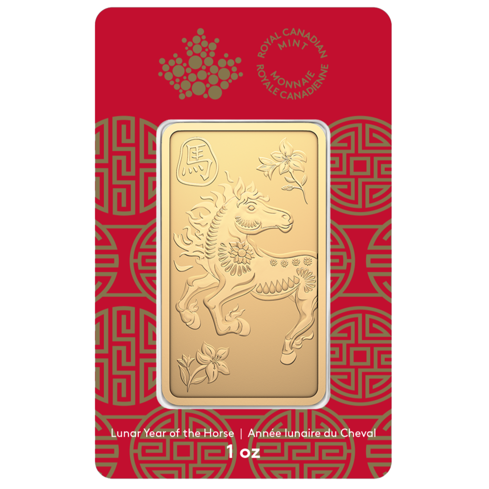 Each 1 oz. gold Lunar Year of the Horse bar comes sealed in custom tamper-evident packaging that highlights the traditional gold and red of the holiday, thus providing a stunning